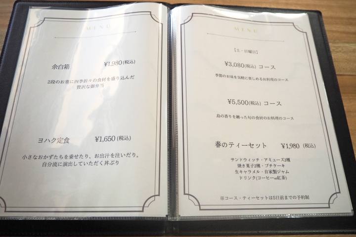 土日は限定のコース料理も味わえるそう。カフェメニューのティーセットとコース料理は、5日前までの予約が必要です。