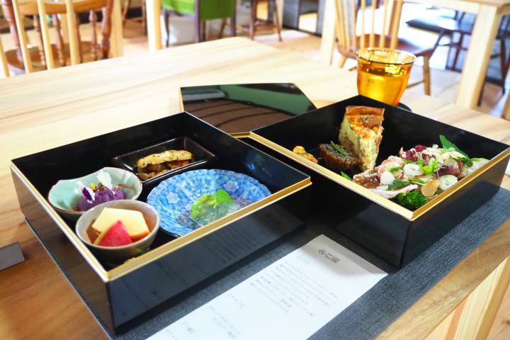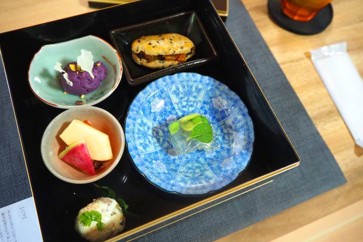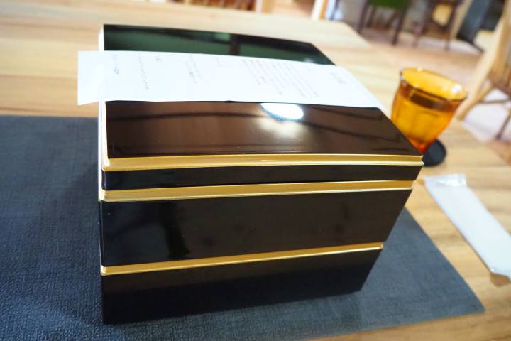 余白箱の1段目は前菜で、1つ1つすごく凝っていて、種類が多いのでたのしめます。