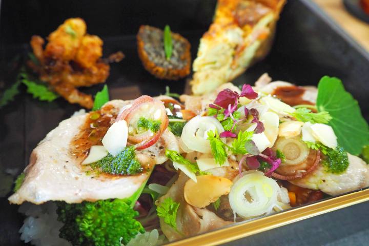 メインの豚肉は柔らかくてお肉の味がしっかり。ジンジャー醤油ソースは子どもから大人まで食べやすい味でした。