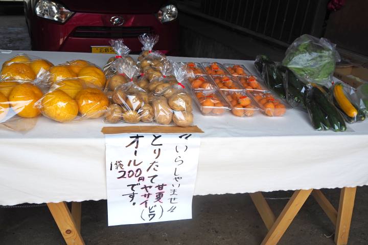 お店の前では元気な話し声が聞こえたので行ってみると、お母さん達がお野菜を売っていました。
