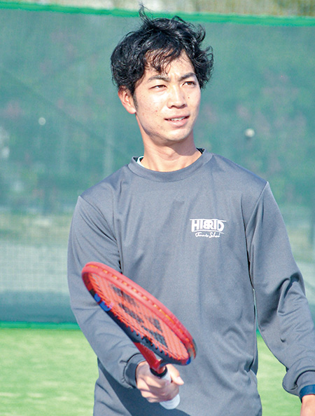 独自のメソッド(方法)を確立し、2020年9月から「hibrid tennis school」(ハイブリッド・テニススクール)を主宰する樋口哲也さん(29)。子どもたちからシニア世代まで、テニスの楽しさを伝えている。(日川)