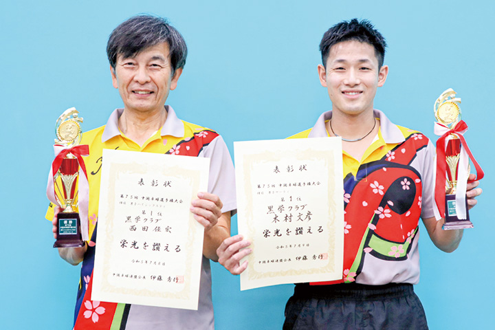 黒学卓球クラブ(東広島市黒瀬町大多田)の指導責任者の木村文彦さん(34)と所属する西田佳宏さん(66)は 、7月 8~9日に山口県で開かれた「第75回中国卓球選手権大会」(中国卓球連盟主催)に出場し、そろって初優勝した。(山北)