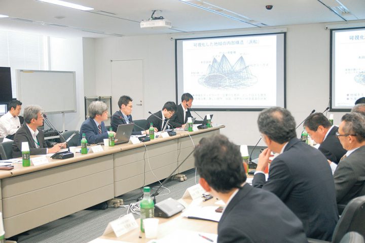 「知的資源の活用による、新たな産業施策の立案について」をテーマに、市職員が市の分析を発表。東京大学大学院工学系研究科の坂田一郎教授が、リーサスを使い企業のネットワークを可視化して取り組んだ事例などを説明した。