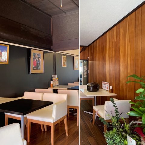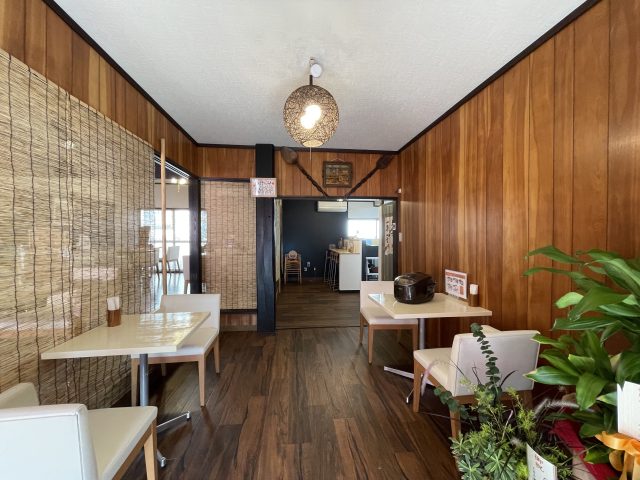 店内は、自分たちで壁を塗装したり、DIYして仕上げたそうです。部屋の仕切りにすだれを掛けて、ほどよくプライバシーを保ち、部屋を広く見えるような工夫もされたそうです。