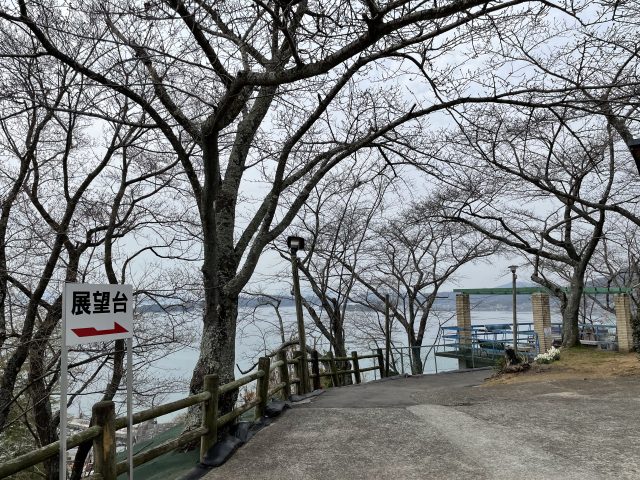 周りにも桜の木があり、桜と瀬戸内の島が眼下に広がります。