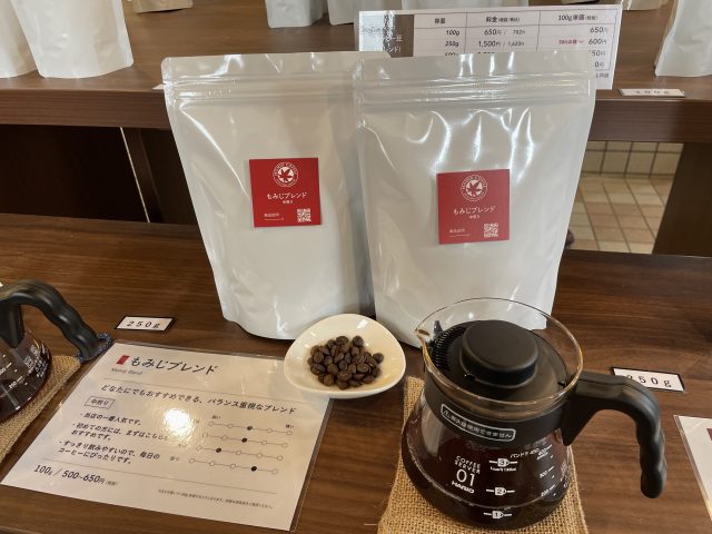 もみじコーヒーは、自家焙煎のコーヒーを販売するお店。
