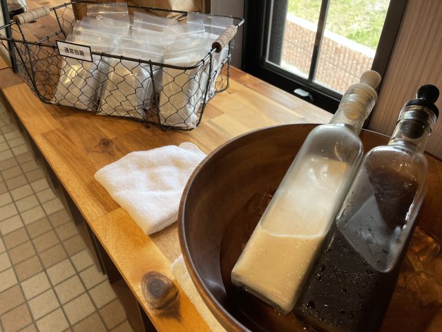 牛乳(ミルク)に漬ければ、おいしいアイスカフェオレも作れるそうです。これも試飲ができます。