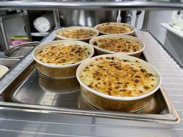 今では、一般的に「ドリア」と呼ばれることの方が多い名称も当時の「ライスグラタン」のままです。