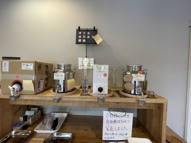 オイルやはちみつ、醤油。液体の商品も購入できます!