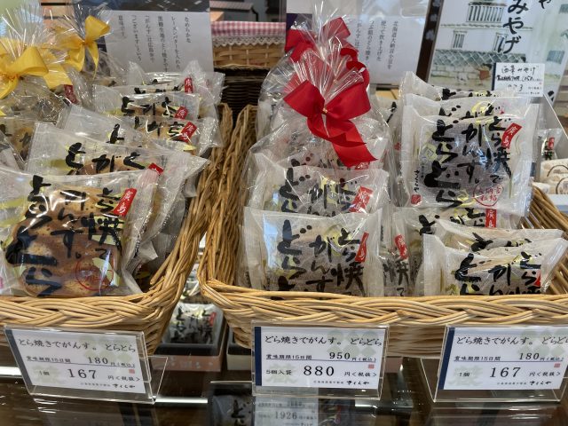 お子さん達にも大人気「どらやきでがんす どらどら」。ずっしりとした大判のどらやきです。
