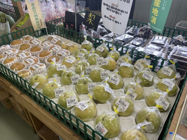 この日は、ぶどう(ピオーネ、藤稔など)、梨(幸水、二十世紀)が並んでいました。