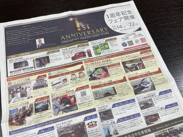 2022年9月にニューアル移転した、広島マツダ 西条店の新世代マツダブランドショールーム完成から1周年目を記念して「1周年記念フェア」を開催。
