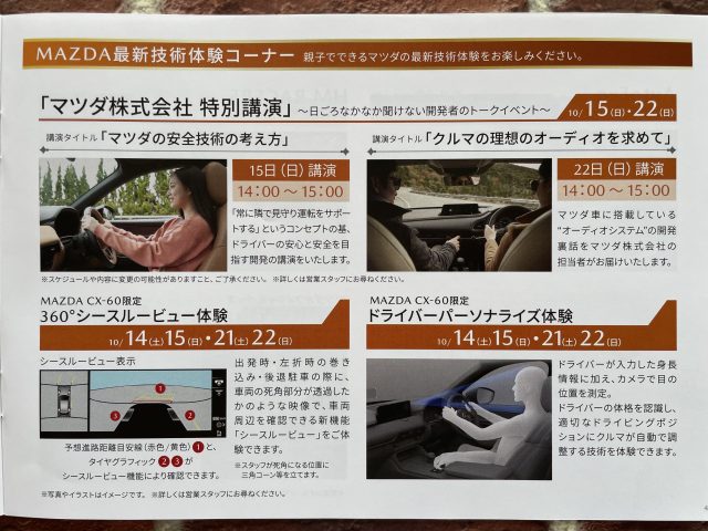 特別講演「マツダの安全技術の考え方」や、「車の理想のオーディオを求めて」など、日頃なかなか聞けない開発者のトークイベントは車好きなら聞いてみたいはず!