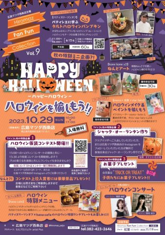広島マツダ 西条店では、イベントなどを通してたくさんの方に訪れていただきたいと、月に一度を目安に、ワークショップを主としたイベント「Hiromaz Fan Fun Collection」略して「ファンコレ」を開催。2023年10月29日(日)は、「ハロウィンを愉しもう!!」を開催!