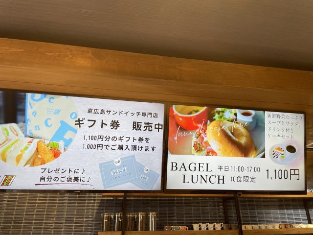 フレスコサンドカフェでは、平日限定10食の「ベーグルランチ」というメニューがあります。