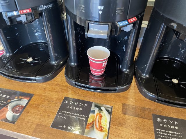 店内にコーヒーポットが設置してあるので、飲み比べてみてください。