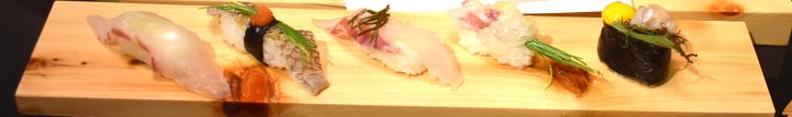 こちらがリニューアルの新メニュー「瀬戸内真鯛食べ尽くし五貫盛り」です。