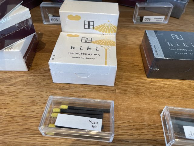 小さな箱に入っているのは、マッチ棒型のお香。マッチのように火を点けてお香の香りを楽しみます。香皿代わりになる箱付きなので、これ1セットあれば手軽にお香を楽しめます。