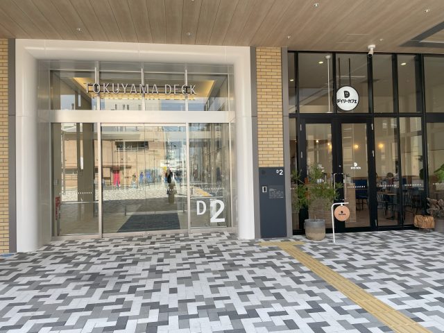 場所は、山口県周南市銀座一丁目31番地。徳山東ICからは車で約35分。JR徳山駅に直結する(徒歩約2分)、徳山デッキ1階にあります。