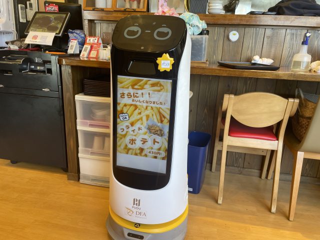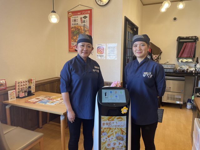 店内でかわいらしく動くのは、接客担当「ペンタ」。背中に注文の品をのせて働く姿に癒されます。お客様に話しかけられたり、頭をなでられたりの人気者ぶりだそうです。