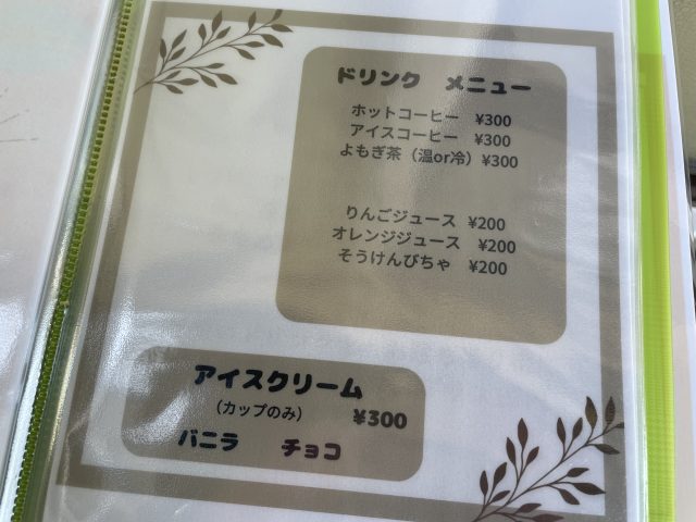 ドリンクメニューもあります。「よもぎ茶」はさっぱりとした味わい。ホットでもアイスでもOK。店舗で茶葉を購入することもできます。