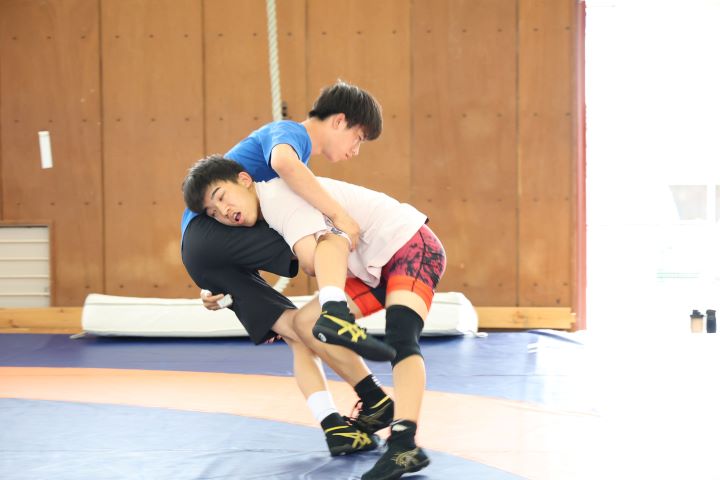 多くの部員は、高校からレスリングを始めた。部のモットーは「一意専心」。現役時代、アジア大会に出場した中森昭平監督の指導で、レスリングに真摯に向き合い、技術を磨いている。