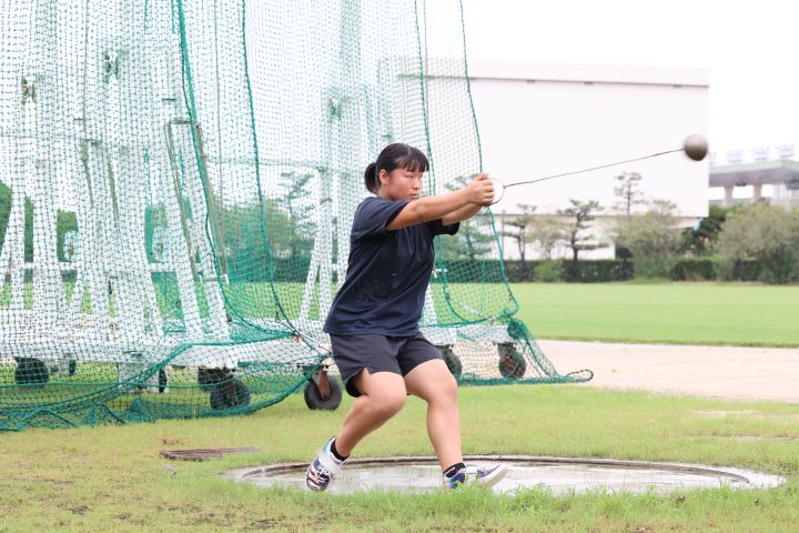 藤谷さんは、中国大会では円盤投げが44㍍03で優勝、ハンマー投げは56㍍02で2位に入った。インターハイでは、2種目とも6位内の入賞を目標に掲げる。ハンマー投げでは、「60㍍台を投げて、全国区の選手と勝負したい」と話す。