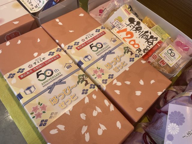 市政施行50周年記念「はっぴーせっと」。お得な内容で販売中です。この機会にぜひ。