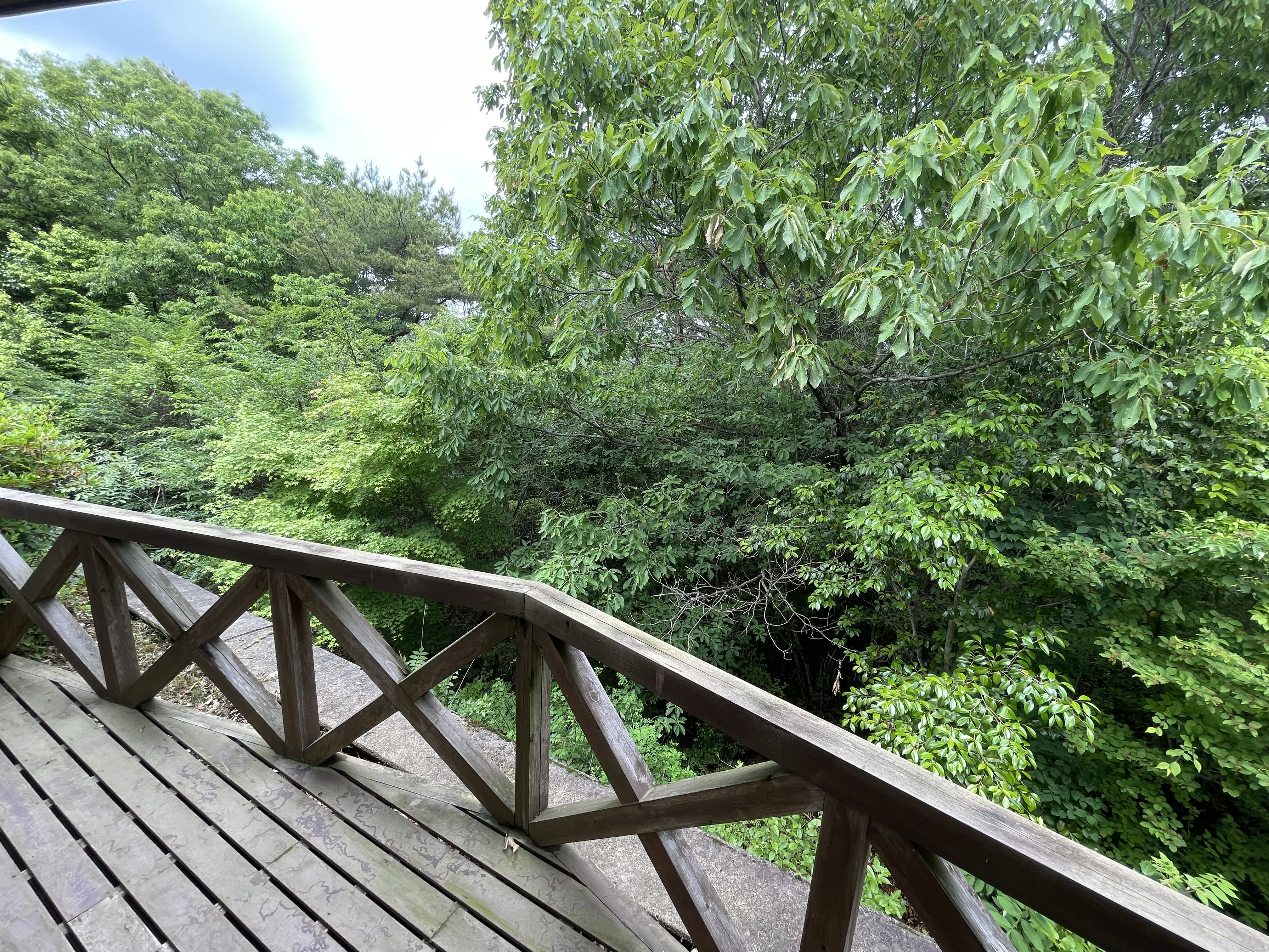 ウッドデッキに出れば、風の音や鳥の声に癒され、別荘にいる気分♪