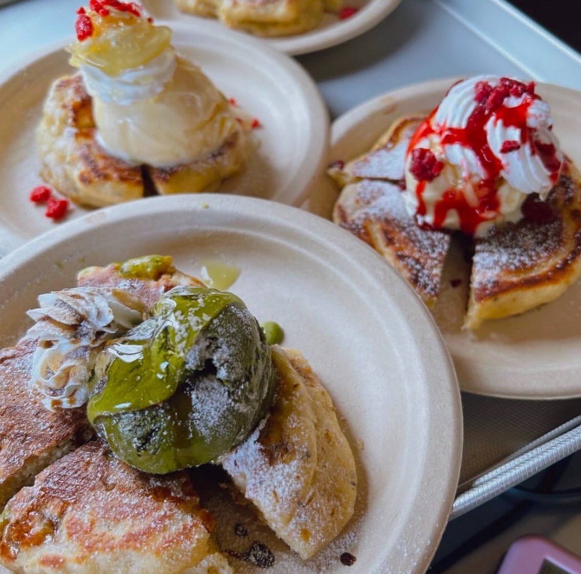 パンケーキ(アイスのせ)ベリー、抹茶、はちみつレモン(各500円)