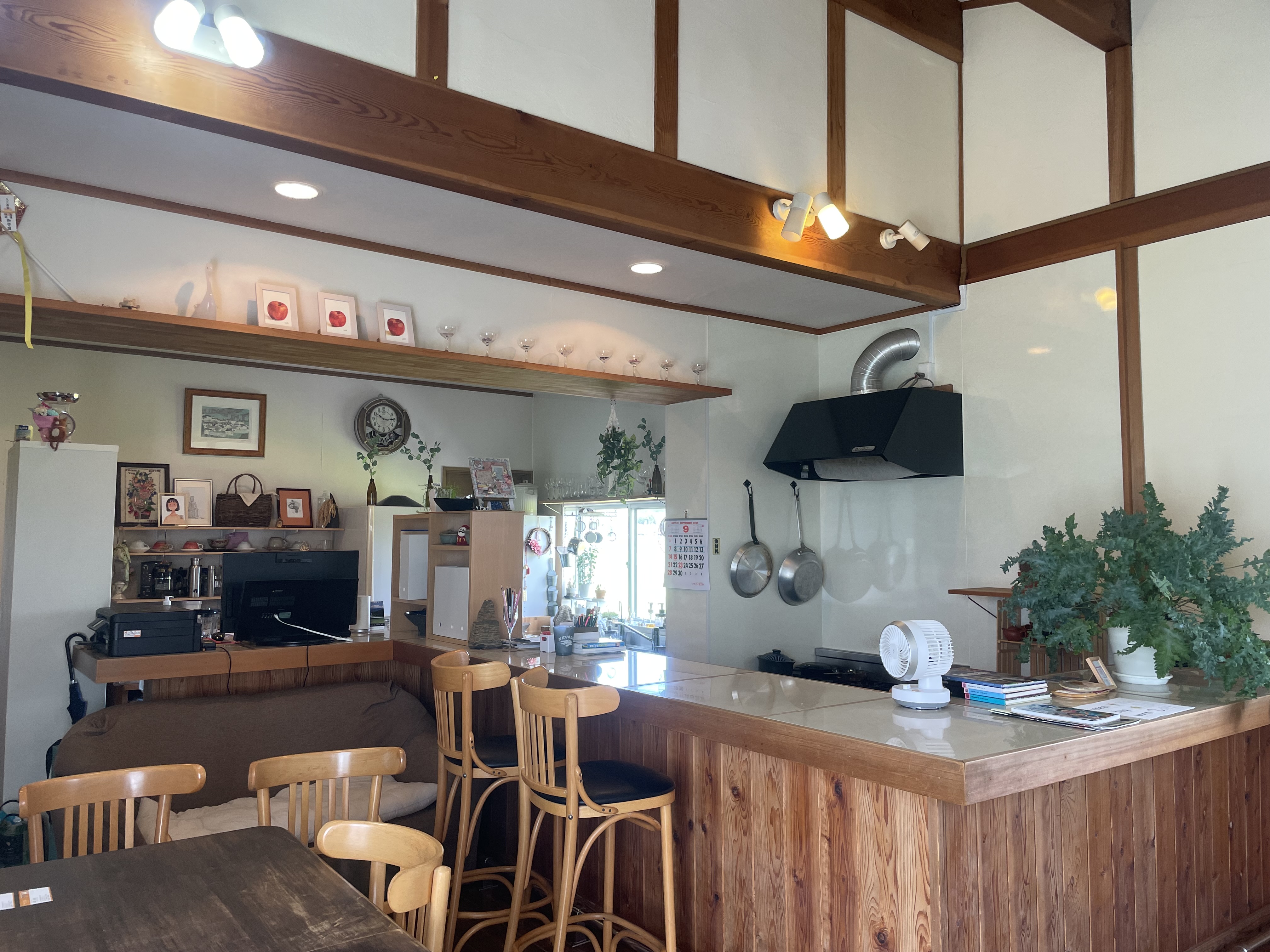 店内は柔らかいナチュラルな木の色合いが、カフェスペース全体をやさしい雰囲気に。席は、テーブル席とカウンター席があり、まさにカフェ。時間がゆっくりと流れているような心地よい空間です。