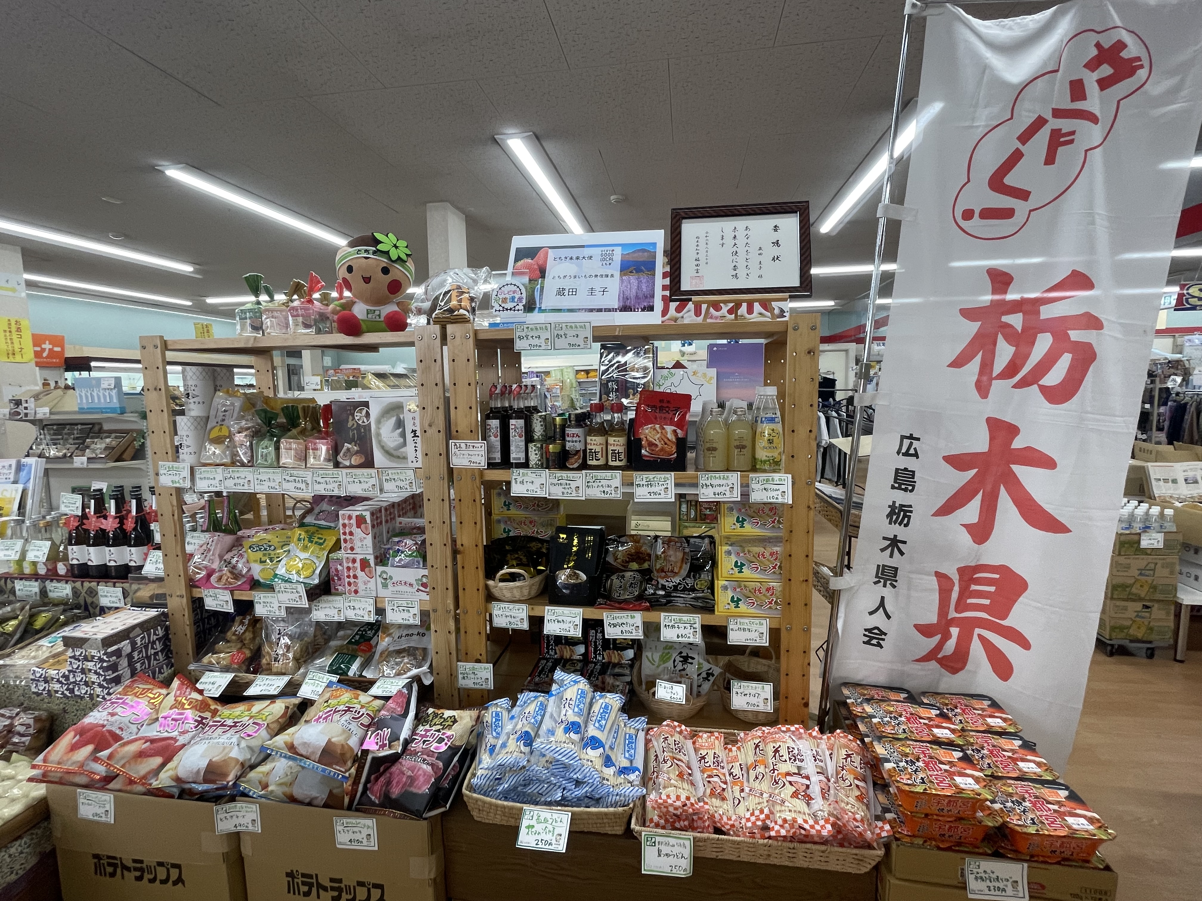 店長の蔵田圭子さんは、栃木県産の商品や文化の魅力を広島で発信し続けている活動が評価され、栃木県知事から「とちぎ未来大使」に任命されています。地元・栃木への思いと、広島との架け橋にという思いが、今回の物産展にも込められていました。