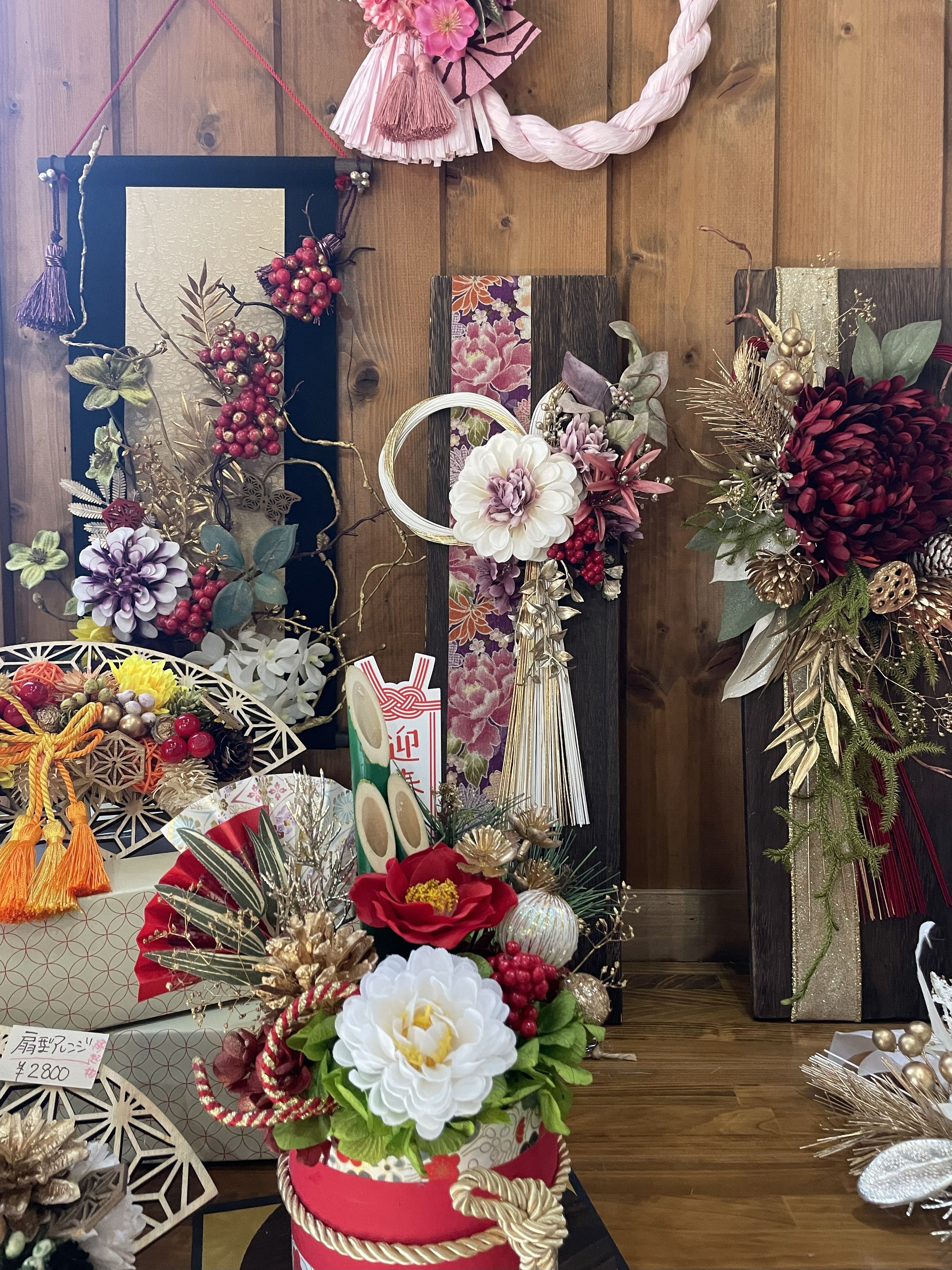 壁に掛けられるボードタイプのお正月飾りも。