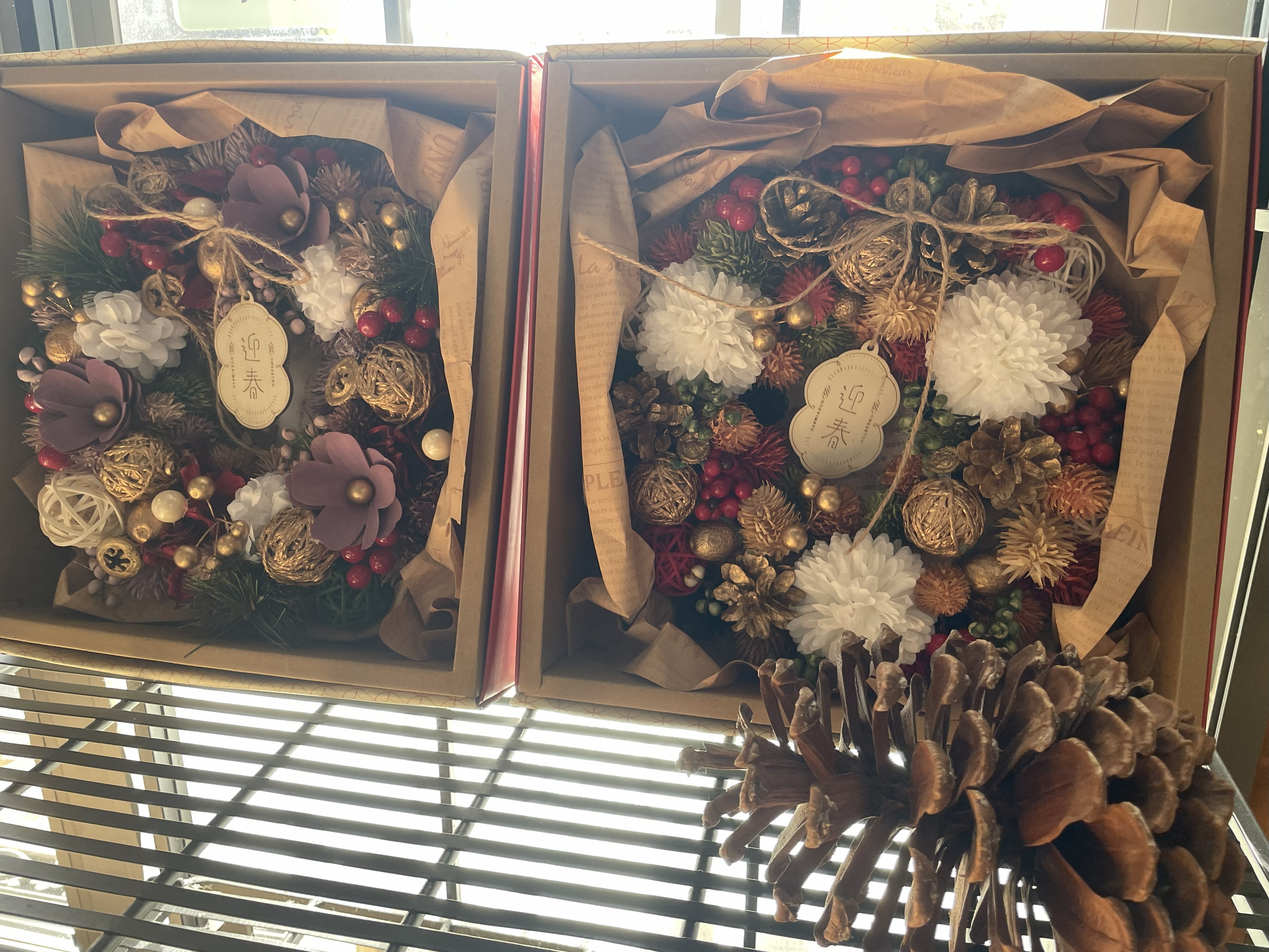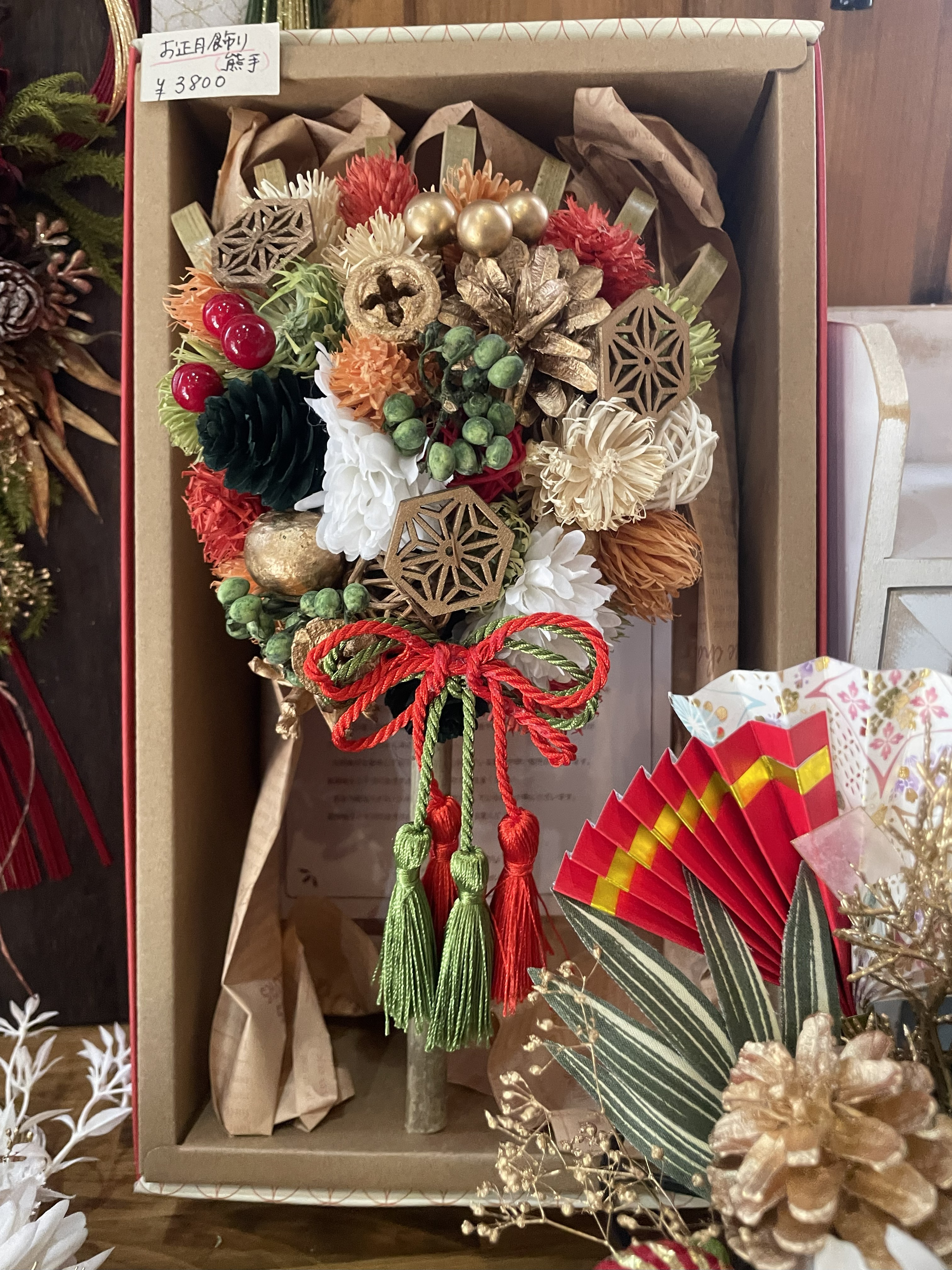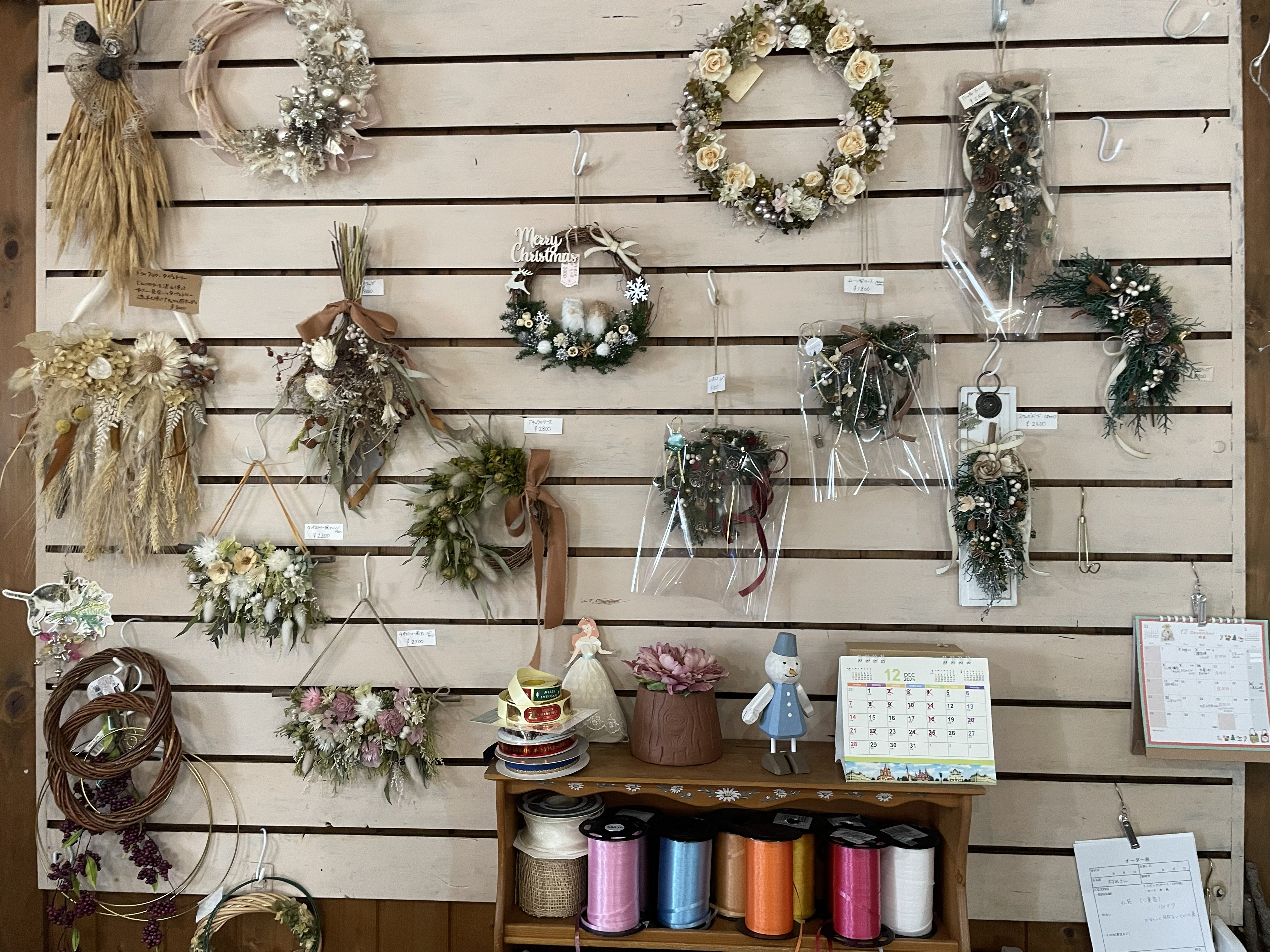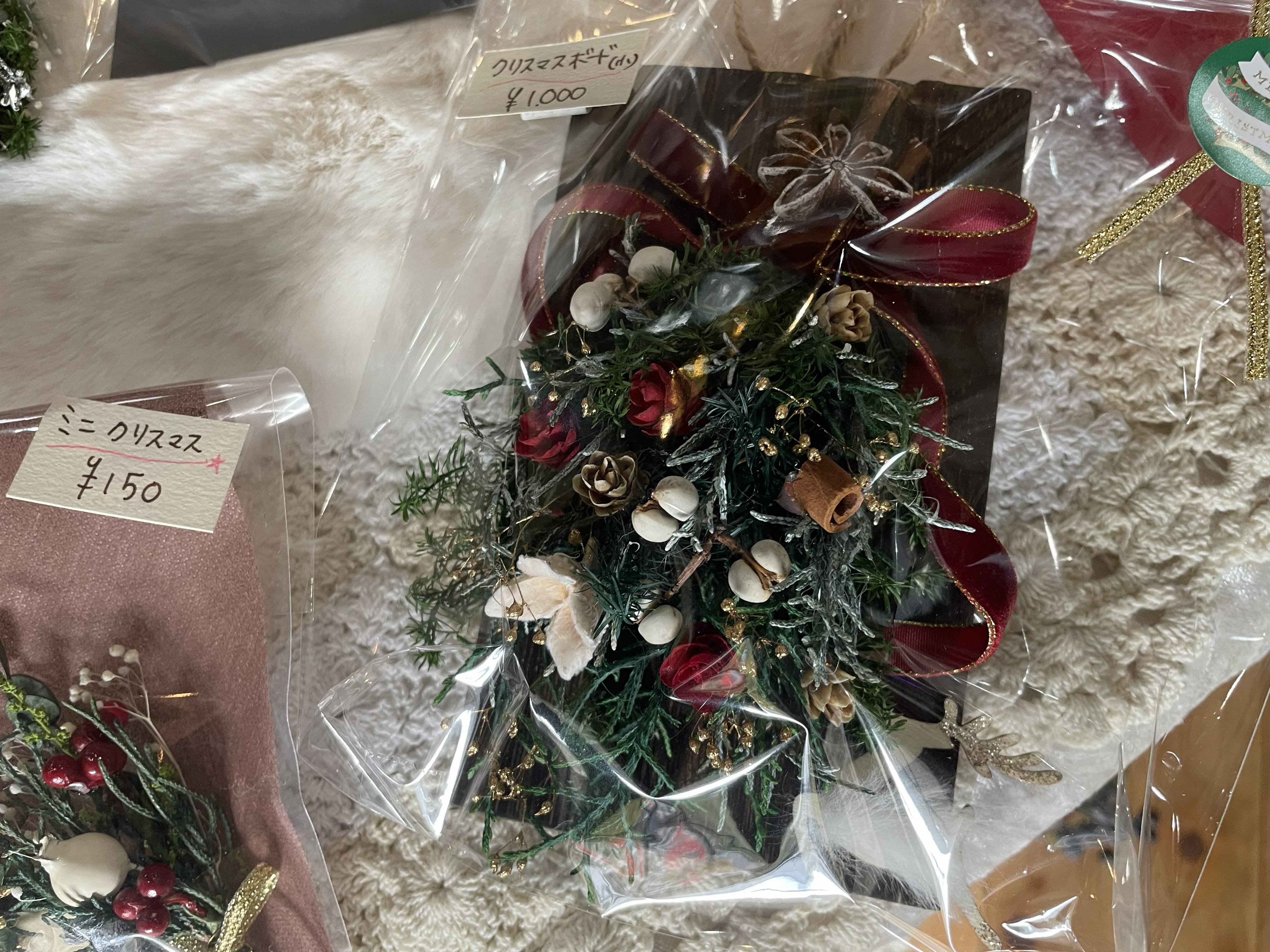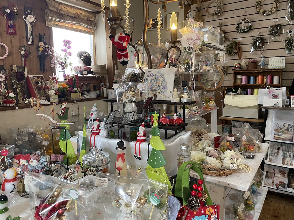 店内に一歩足を踏み入れると、まるで季節のギャラリー。 この日は、赤や緑、ゴールドなど、華やかな飾りが目を引きました。 ゴージャスだけど、どこか落ち着きがあって、かわいらしい。見ているだけで心がほっと和みます。