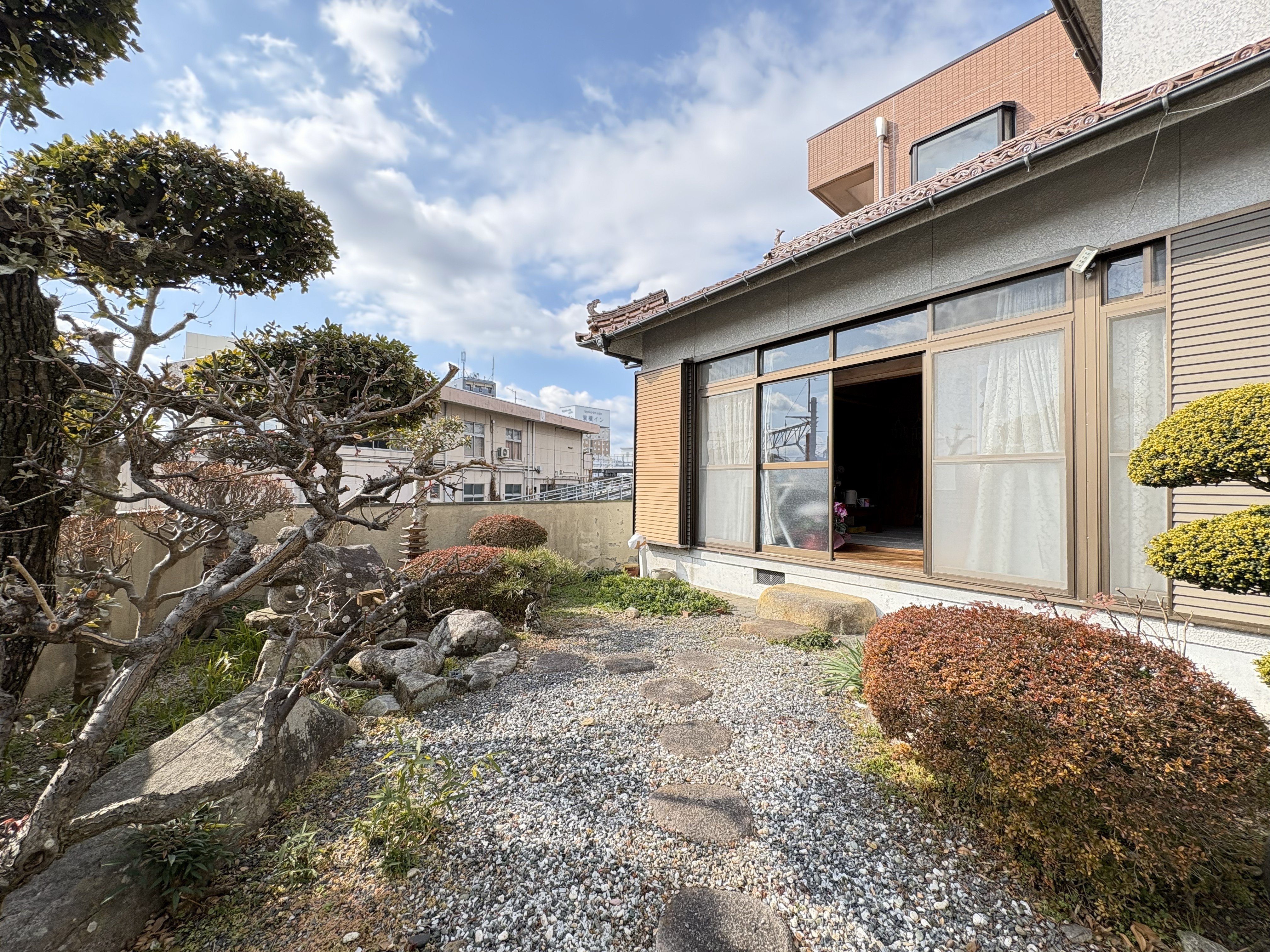 門を入ると、縁側へと続く飛び石が迎えてくれます。歩くたびに「トン、トン…」と音が聞こえてきそうな、昔ながらの佇まい。