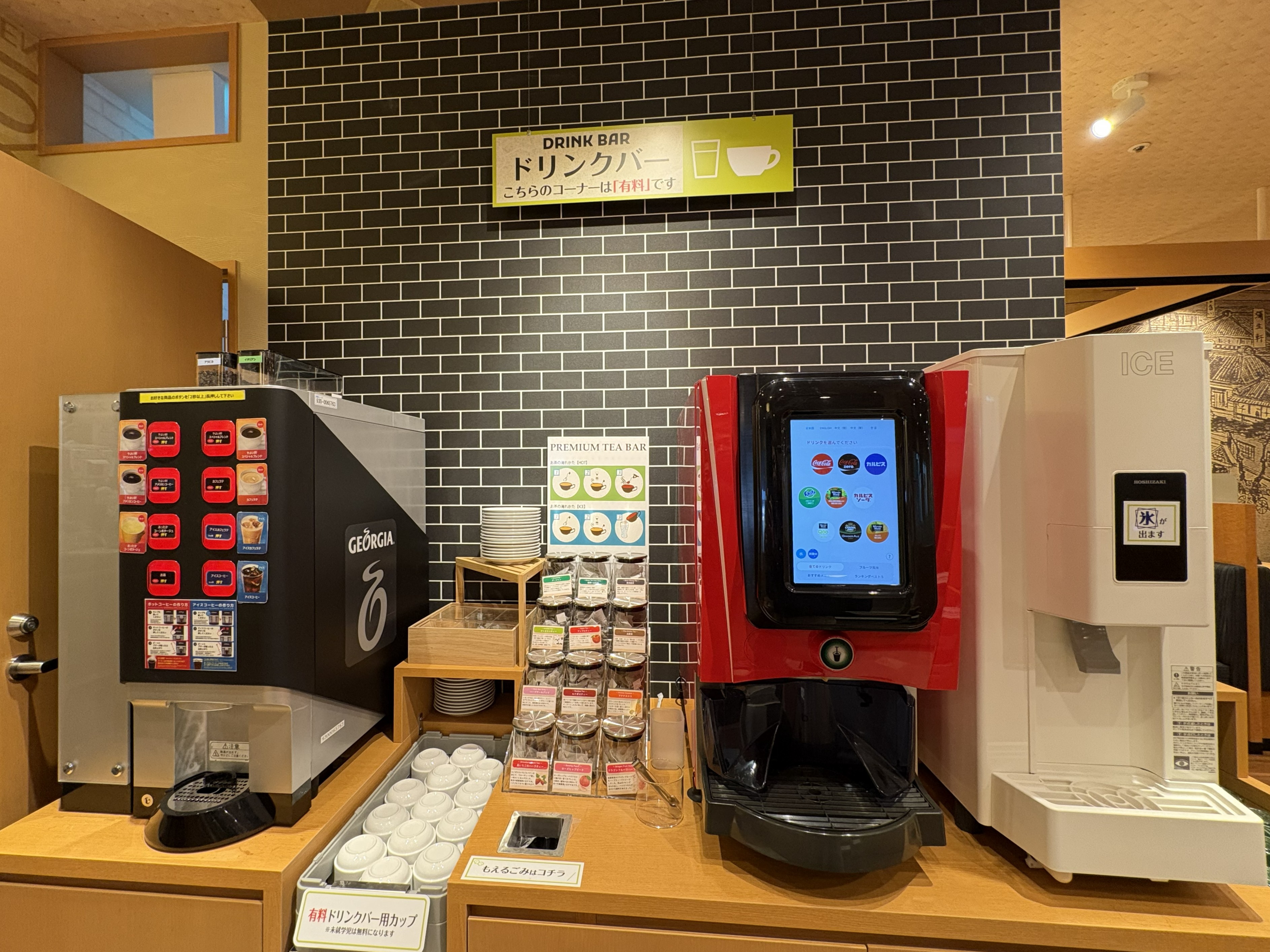 さらに、ドリンクバー(有料)も新設。食事やデザートと一緒に、好きなドリンクを楽しめます