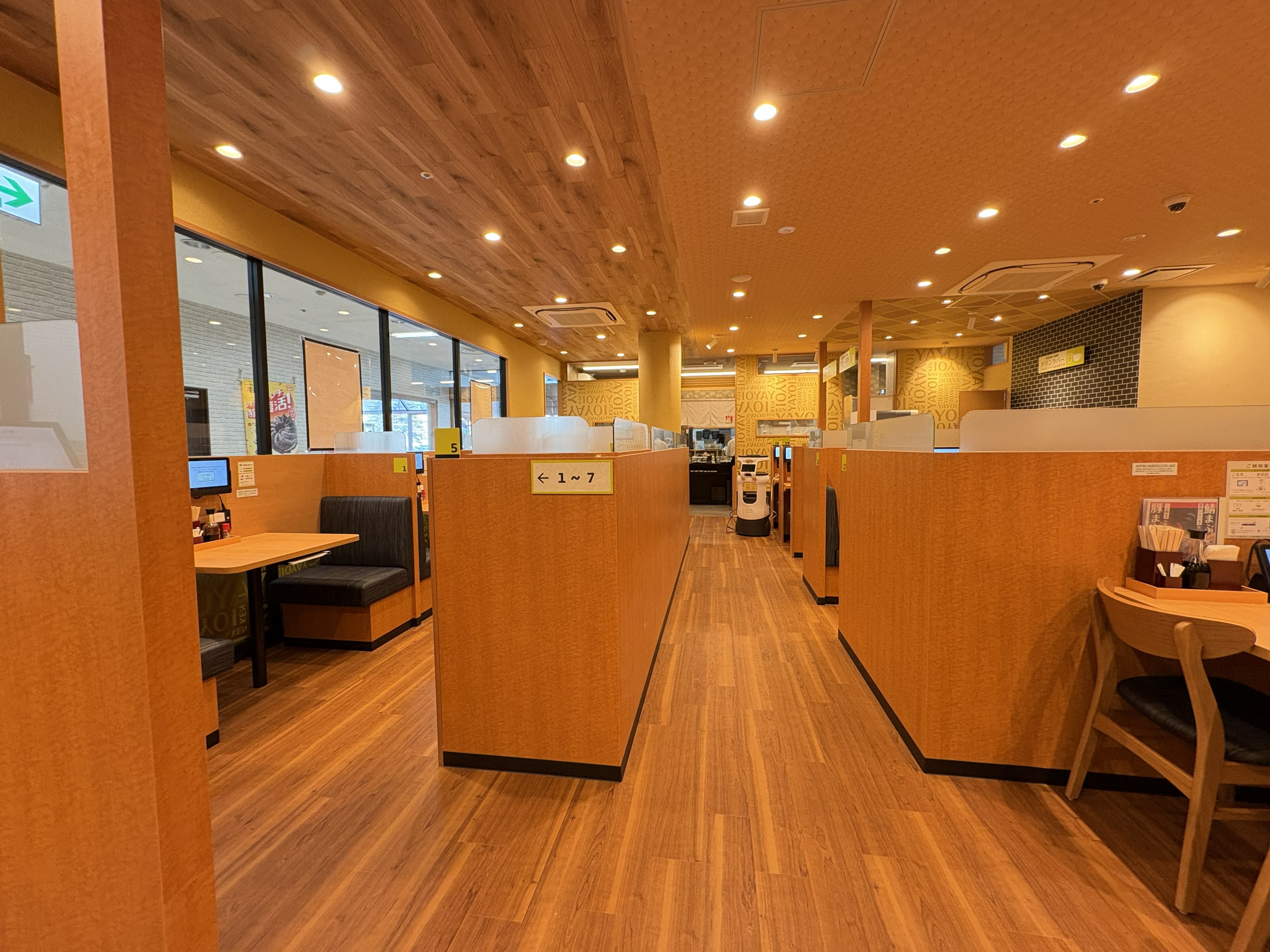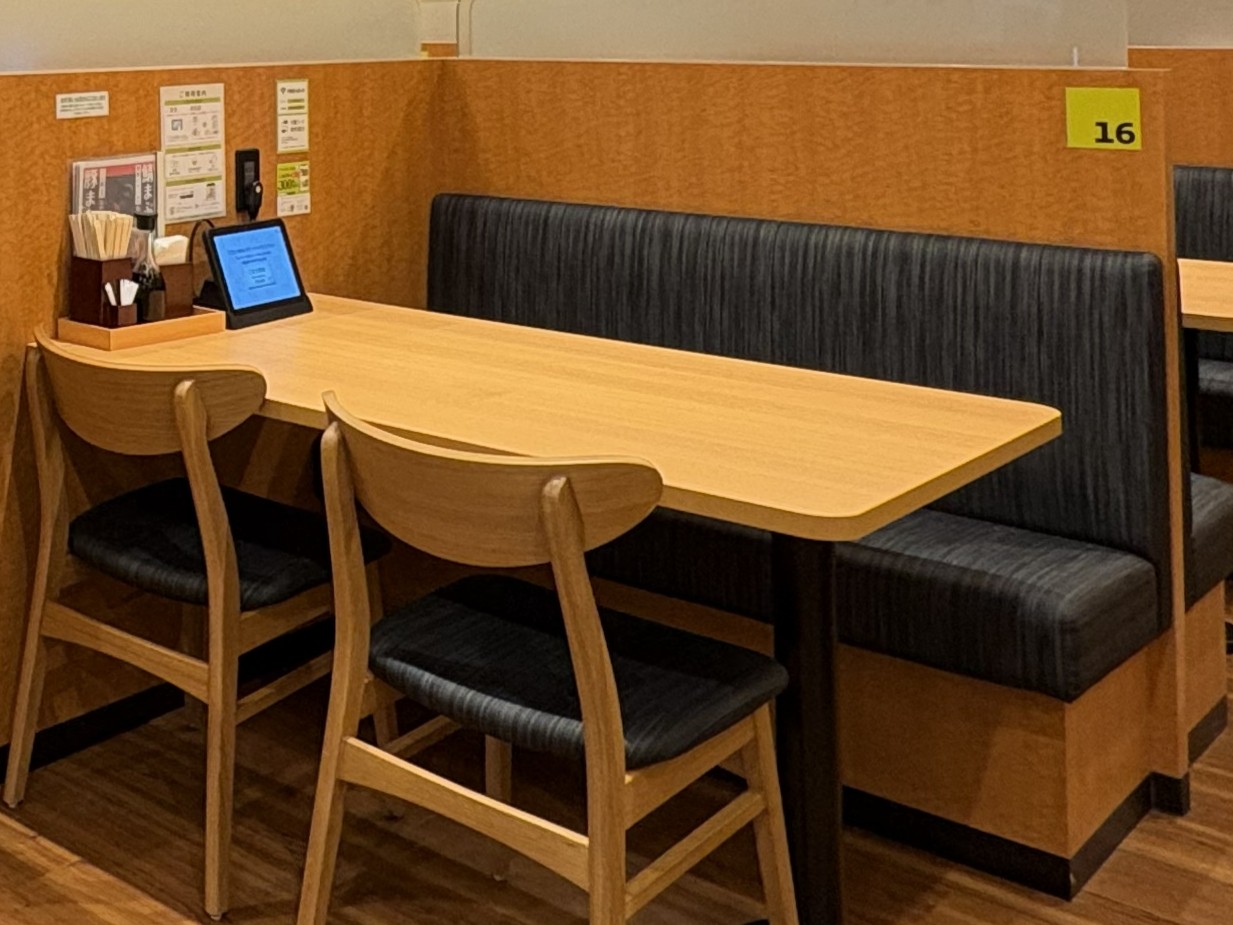 店内はボックス席スタイルで、食事中もプライベート空間がしっかり確保されています。椅子の幅も広く、ゆったりとした時間が過ごせそうです。