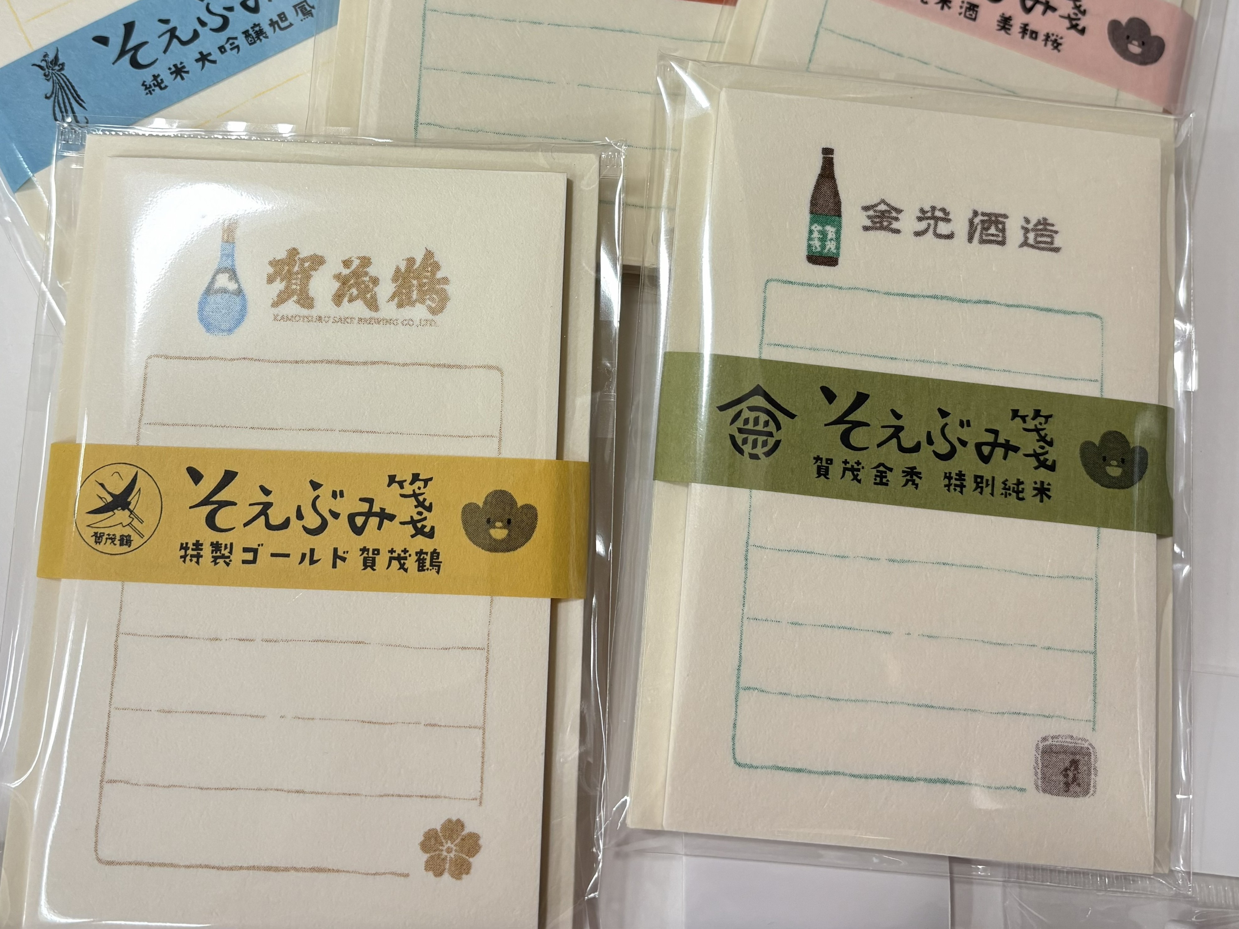 東広島からは、賀茂鶴酒造と金光酒造の商品がモチーフの文具が登場。