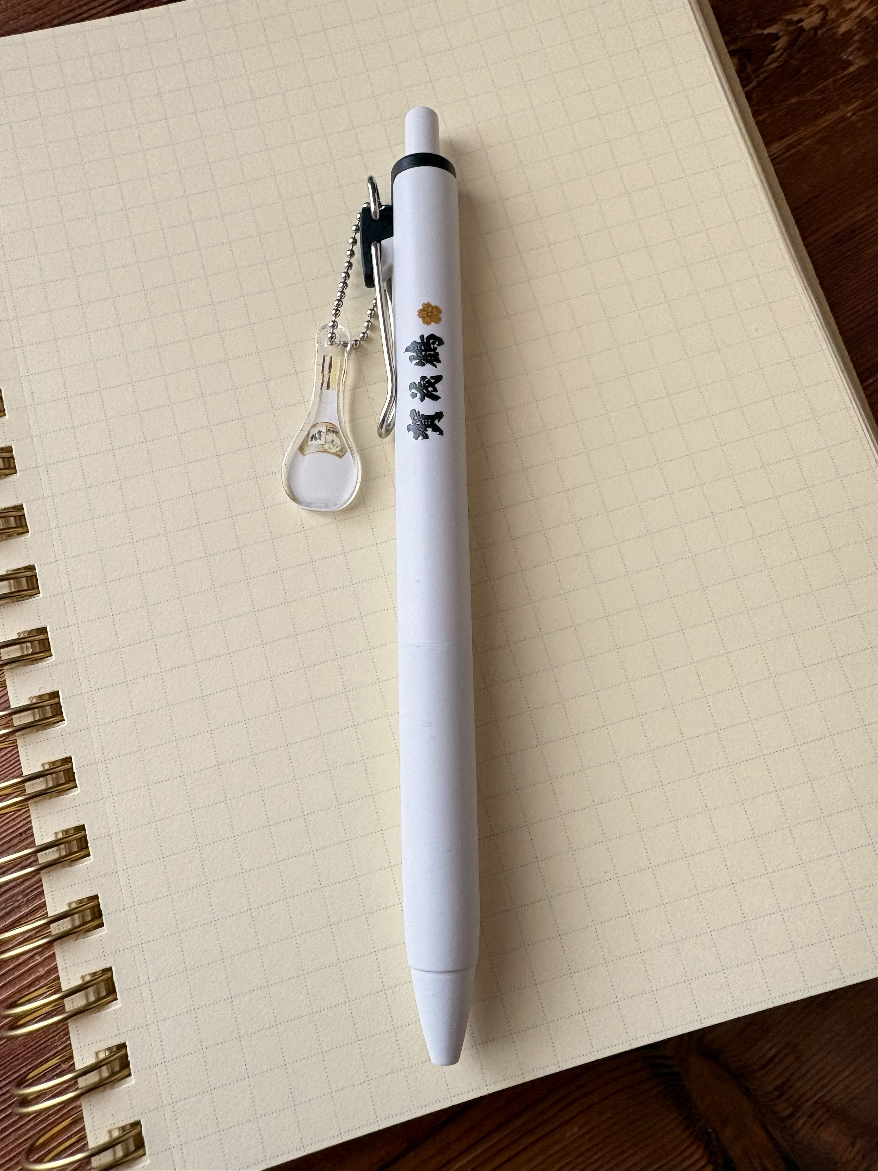私は、手帳用に賀茂鶴酒造デザインのチャーム付きボールペン(ユニボールワン)を購入しました。