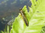 一般の水中昆虫と異なり、腹を上にして泳ぐので古生代の生物を連想させます。