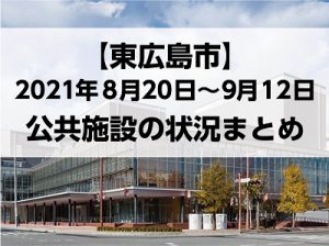 東広島市が新型コロナウイルス感染症「まん延防止等重点措置地域」に指定されました。期間は2021年8月20日(金)~9月12日(日)です。 市は公共施設の取り扱いについて、以下の表のように発表しました(8月1 … 続きを読む 【東広島市・新型コロナ】図書館やスポーツ施設などを休館に 8月20日~9月12日の公共施設の状況まとめ