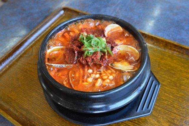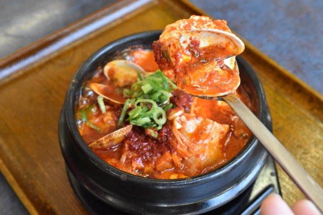 何を隠そう筆者は、このメニューがピリ辛の中で一番好き。このスンドゥブチゲのスープが絶品!確かに辛いんだけど、辛すぎず、後からしっかり貝などの旨味が湧き上がってくる逸品。絶対、サイドメニューにライスを追加したくなります(じゅる)失礼。