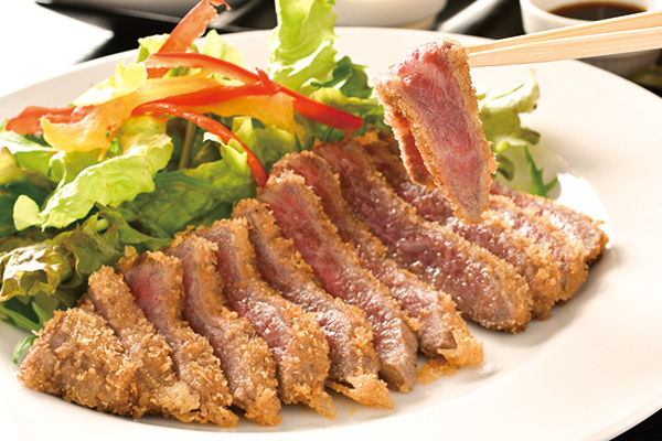 当店イチオシの「黒毛和牛牛カツ」は、お好みの大きさに合わせてオーダーカットさせていただきます。お好みでわさび醤油、特製ソース、岩塩をつけてお召し上がりください。