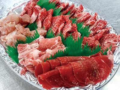 3,190円(税込)(切り落としカルビ・牛ゴローカルビ・上カルビ・牛タン・小腸・大腸・豚トロ・豚カルビ・とりもも・ミノ)