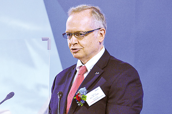 完成式典であいさつするブルース・ピアス社長(撮影・日川)