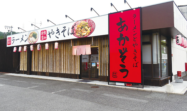 西条駅前にある「ラーメンとうまいもの あおぞう」の2号店として2019年12月にオープン。店長の秋田さんは、「あおぞう」のオーナーと10年以上の付き合いで、「あおぞう」にも常連として通っていました。「あかぞう」店長としてビジネスパートナーになって開店した直後、新型コロナウイルスが流行。営業も制限せざるを得ず、テイクアウトメニューを開発するなどして、この危機を乗り越えようと奮闘しました。