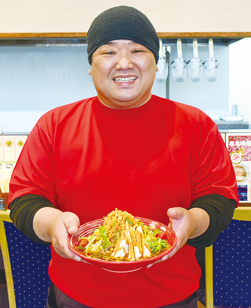 店長の秋田さん。安芸高田市出身。料理は作るのも食べるのも好きで、休みの日には趣味を兼ねて食べ歩きする。
