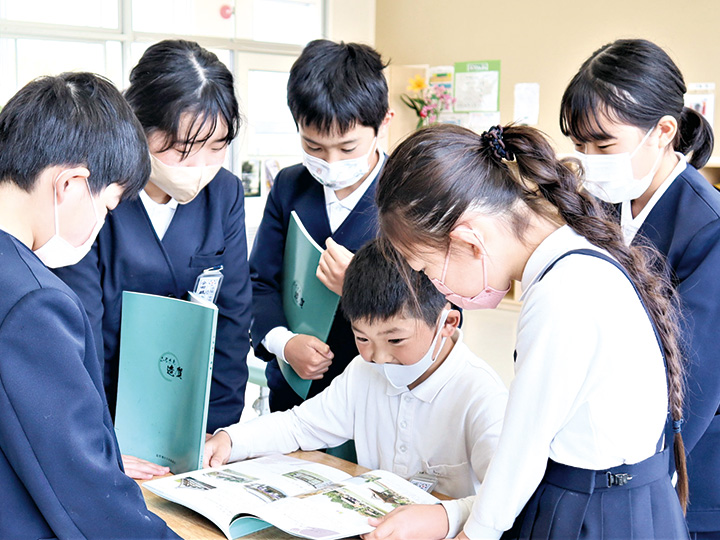 児童たちは冊子を手に取り「造賀のことが詳しく書いてあり、作ってくれた地域の人はすごいと思う。授業の時に参考にしたい」と喜んでいた。冊子は総合的な学習の時間や、生活科などで使うという。