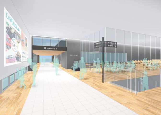 通路や駅舎はバリアフリー化され、最大1万冊を蔵書できる図書施設と待合交流スペースが入る情報ラウンジ棟が新設される。市は、2024年度の完成を目指している。