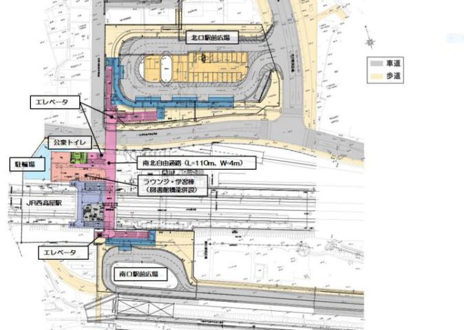 南北自由道路や橋上駅舎ができると、歩道や車道はどう変わるのか。